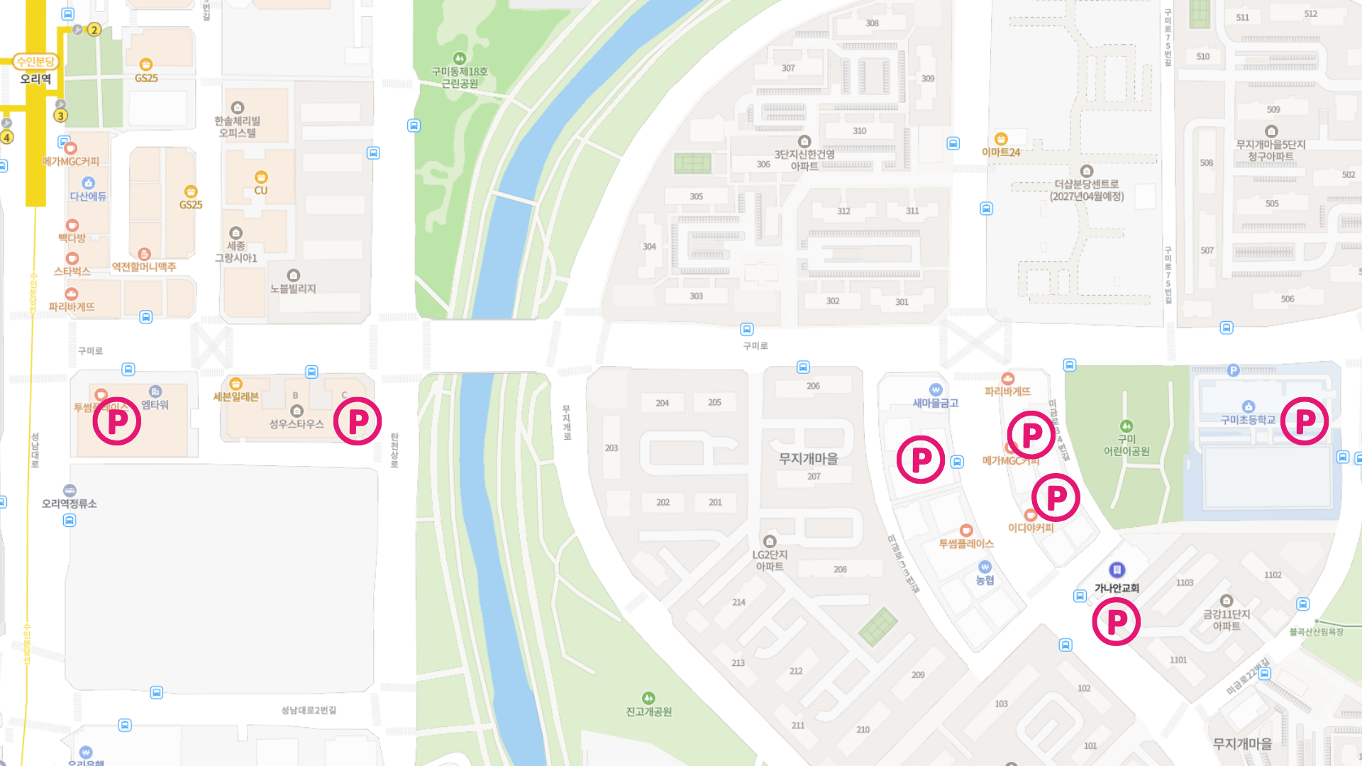 | 2교구 | 무지개마을2단지 LG아파트, 벽산, 수지, 광교 |